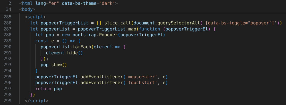 This code opens the popups in the Programming Page when they are hovered over